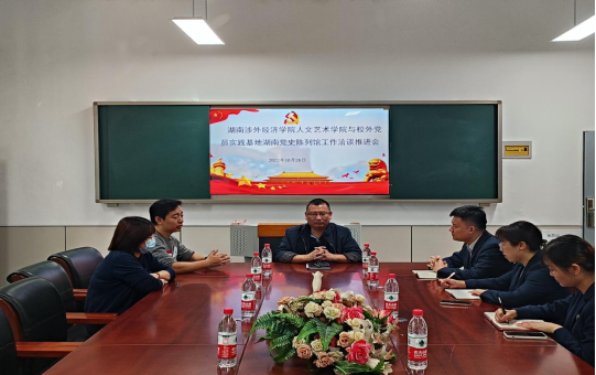 10月26日上午,湖南党史陈列馆文创部部长刘诚、副部长田翔尹、文创专干谭珊一行,来我校人文艺术学院参观考察并就未来合作展开座谈。人文艺术学院党总支书记副书记周孝贵主持座谈会并表示热烈欢迎,视觉传达专业主任杨宇、教师杨璇出席。