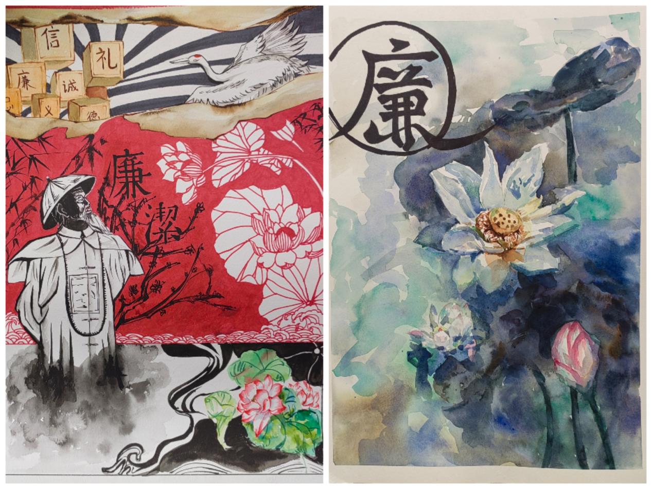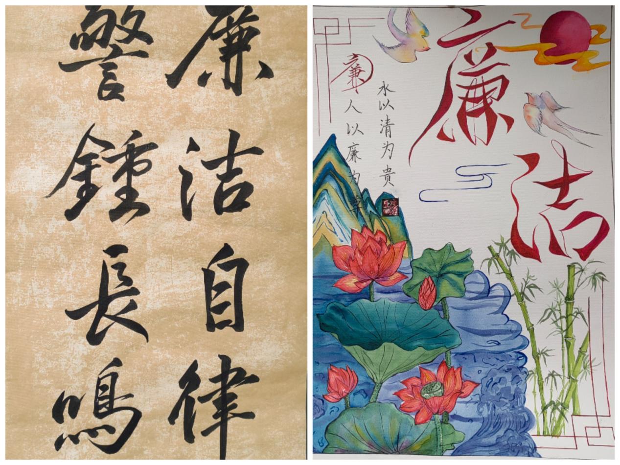 参赛作品紧紧围绕“廉洁”主题,以“莲”为美,用画笔彰显莲花身处污泥,却纤尘不染,长于清涟,却清丽脱俗,洁身自好,品格庄重的美好形象,画“莲”思廉,告诫党员干部们增强党性修养、提升廉洁意识。学生们在一笔一画之间,诠释了他们传播廉洁文化和勤学的崇高气节,旨在通过书法绘画的艺术表现形式,彰显新时代全面从严治党的新内涵、新要求,引导广大党员干部学廉、知廉、传廉、尚廉、践廉,在文化熏陶中增强廉洁自律意识和文化自信,更好地弘扬崇尚廉洁、鄙弃贪腐的价值理念,坚决筑牢思想之基,补足精神之钙。