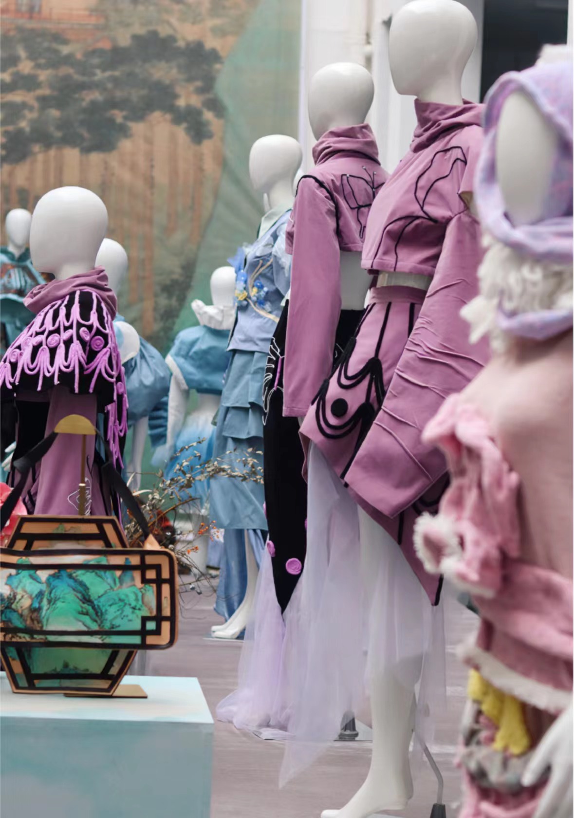 本次展览的作品,以青绿山水为灵感来源,学生们运用现代剪裁和设计语言,将中国传统美学与现代时尚完美融合。