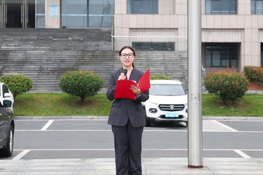 活动伊始,由林晨韵同学主持,首先介绍了到场的领导。接着,湖南涉外经济学院学生志愿教导大队国旗护卫担任升旗仪式,场面隆重庄严。升旗结束后,人文艺术学院院长贾青彦发表讲话,鼓励全体师生共同打造优良学风、美好校园。最后,由新生代表谢妤骞发言,提倡共同贯彻“三三五一”行动指南,让优良作风内化于心、外化于行。