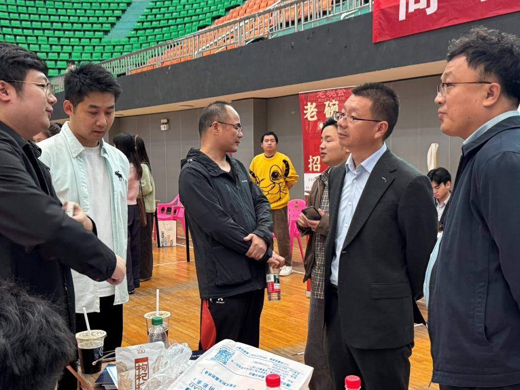 活动在热烈的氛围下有序推进,各个企业代表与毕业生们进行了深入,坦诚的交流。在各个企业展位前,毕业生积极与招聘人员沟通,了解企业的职业概况,用人需求等。毕业生们结合了自身专业特长与职业规划,投递简历,充分展现了我院学子的专业素养及综合能力。人文艺术学院院长贾青彦,党总支书记廖立彬及大四年级全体辅导员老师也莅临活动现场,与参会企业和毕业生亲切交流,提供了宝贵的建议,并表达了对我院学子的美好期望。