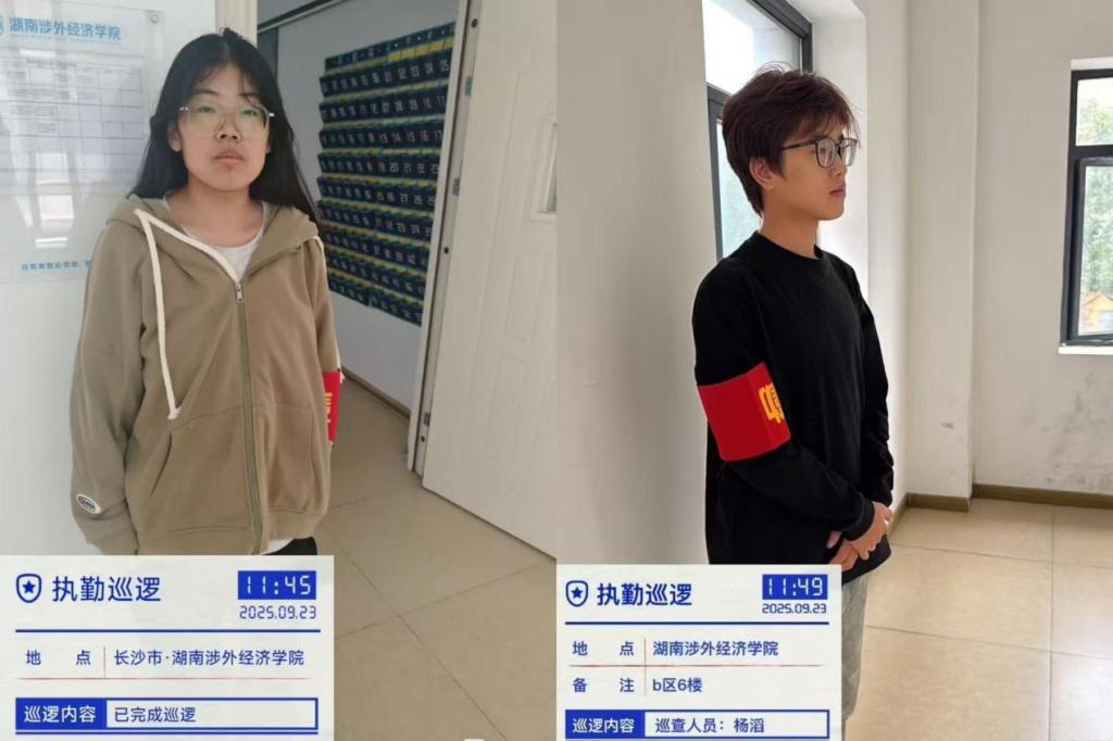 为配合新综合楼投入使用后的管理需求,学院特别设置了新综合楼公共区域执勤岗。学生在执勤过程中,不仅负责引导秩序、维护公共设施整洁,还协助进行安全巡查与不文明行为劝导。通过岗位实践,同学们进一步理解了公共空间的管理规范,强化了纪律意识与服务精神。