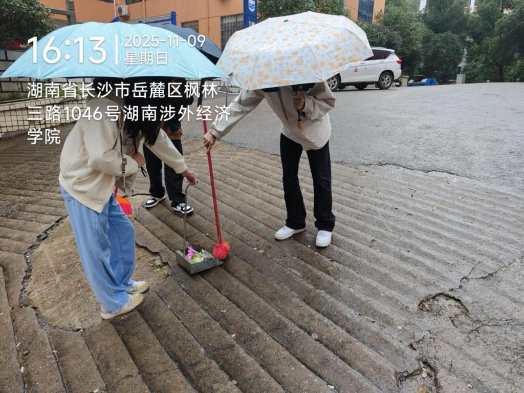 在校园文明岗轮值卫生打扫任务中,同学们以小组为单位,对校园主干道、绿化带、广场等公共区域展开全方位清理。各小组分工明确、配合默契,从捡拾垃圾到清扫落叶,不放过任何卫生死角。同学们在亲身参与中不仅改善了校园环境,更深刻体会到“劳动创造美好”的朴素价值,增强了爱护校园的责任意识。