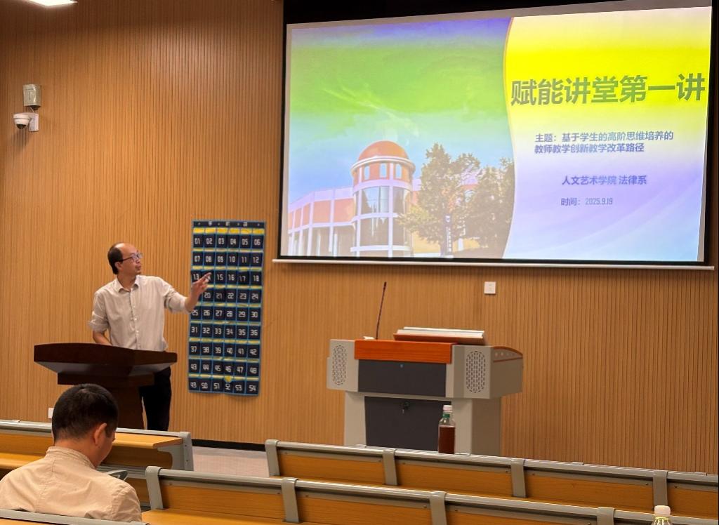 为深化教师教学创新改革,聚焦学生高阶思维能力培养,9月19日14:00—16:00在十二教108教室,法律系所有中级及中级以下职称讲师举办隆重召开赋能讲堂第一讲。本次讲堂以“基于学生的高阶思维培养的教师教学创新改革路径”为核心主题,系主任李辉老师担任主讲人,副校长王萍、学院院长贾青彦、副院长戴文霞莅临指导,系部应到的16名教师全员参会,共同开启教学改革的深度研讨之旅。