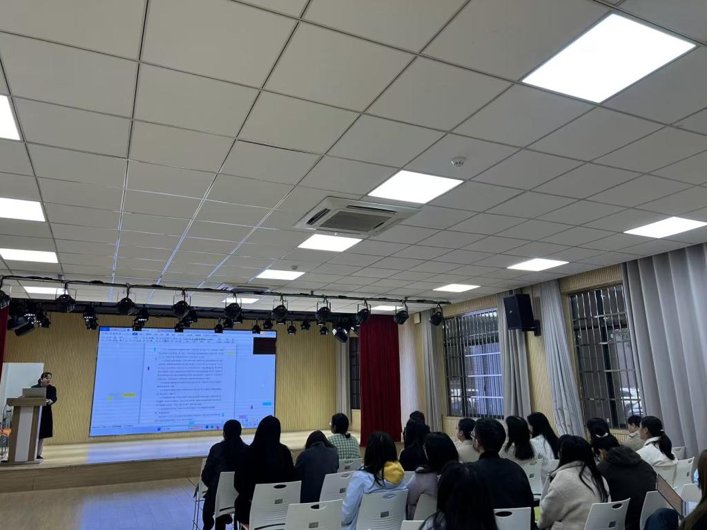 活动伊始,朱永莉主任强调了实践教学在应用型人才培养中的核心地位。随后,聂欣晗教授展开主讲内容。聂欣晗教授首先对学校最新发布的实践教学相关文件进行了系统解读,从政策导向、目标要求、实施细则等方面进行了深入剖析,帮助在场教师准确把握实践教学的核心要点与工作方向。在此基础上,她结合文学与文化产业系在靖港古镇开展的实践教学案例,进行了生动细致的讲解。聂教授详细介绍了该实践项目的前期筹备、中期开展及后期总结等全流程,包括实践基地的遴选标准、与当地文化机构的合作模式、针对不同专业学生设计的实践任务等内容,并通过图片、视频等素材展示了学生在实践中的成果与感悟。在实践流程与材料规范环节,聂欣晗教授重点讲解了实践教学方案的制定技巧、过程性材料的收集与整理方法以及实践报告的评价标准。她强调,规范的流程和完整的材料是保障实践教学质量的关键,要求教师在后续工作中严格按照标准执行,确保实践教学有据可查、有序推进。此外,聂教授还结合自身丰富的实践教学经验,分享了实践过程中的注意事项,如学生安全保障措施、突发情况应对预案、实践成果的转化与应用等,并与在场教师就实践教学中遇到的难点问题进行了互动交流。