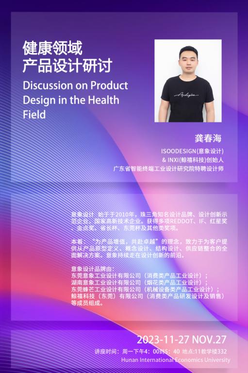 此次培训邀请了ISOODESIGN(意象设计) & INXI(鲸禧科技)创始人龚春海总经理作为主讲人,龚春海总经理是我院产品设计系2013界校友,目前是广东省智能终端工业设计研究院特聘设计师,东莞市工业设计人才联盟&东莞市智能终端行业协会发起人。