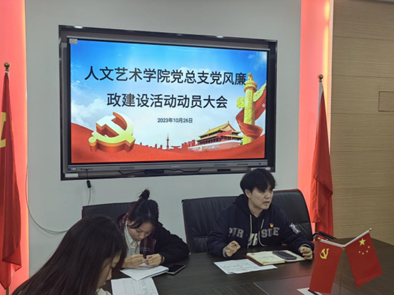 为了学习贯彻习近平新时代中国特色社会主义思想主题教育、推进人文艺术学院党风廉政活动的建设,10月26日中午12:00,人文艺术学院党务办于十一教211教室召开了党风廉政建设活动动员大会。人文艺术学院党总支组织委员党敏老师、学生党务办公室各部长及各下辖学生党支部副书记参加会议。