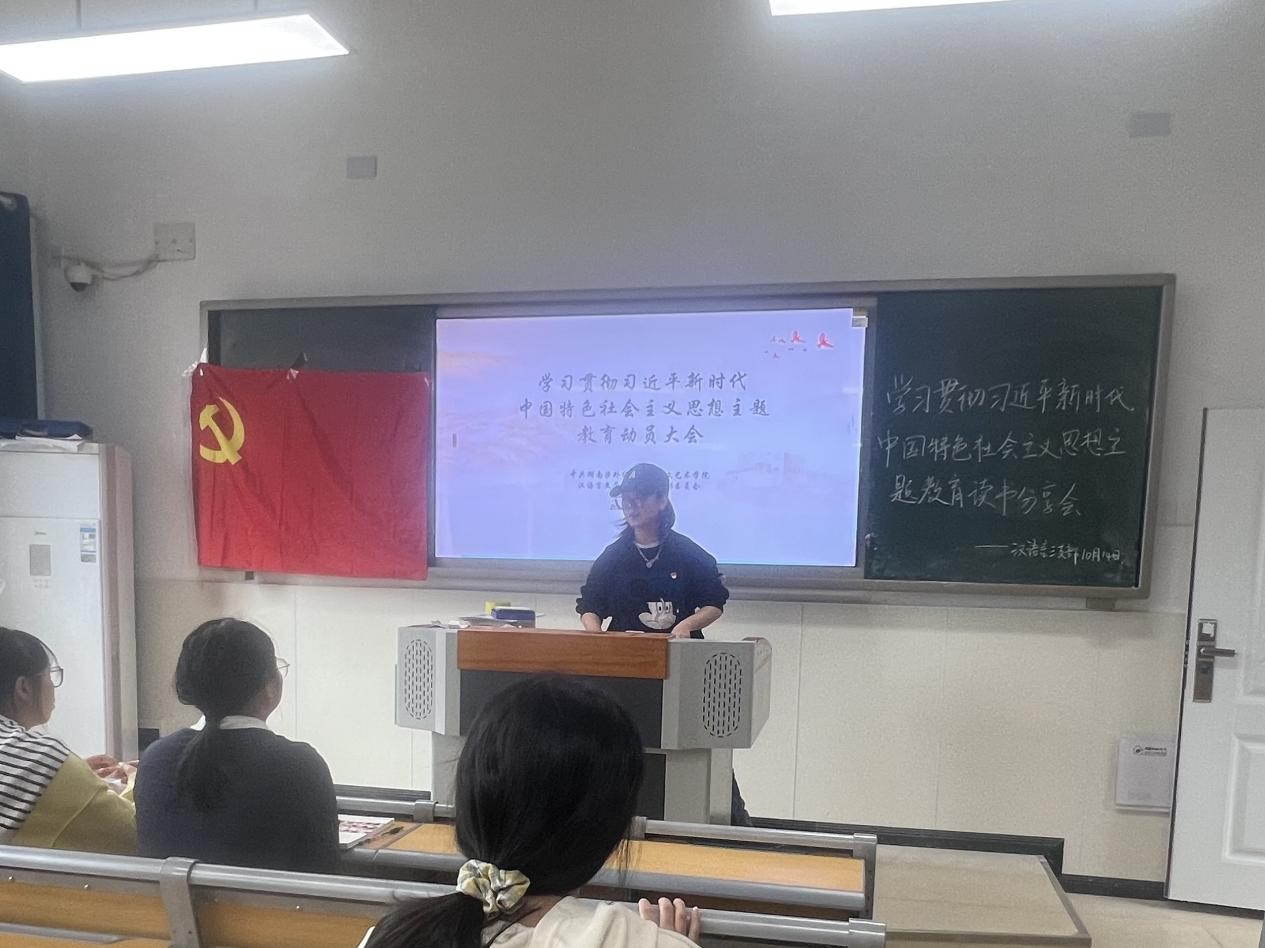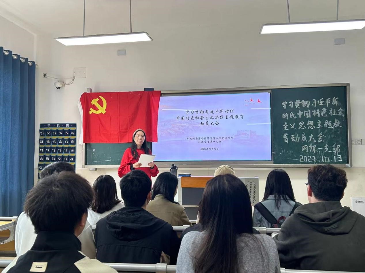 为深入学习贯彻习近平新时代中国特色社会主义思想,2023年10月13日,湖南涉外经济学院人文艺术学院党总支组织各学生党支部开展学习贯彻习近平新时代中国特色社会主义思想主题教育动员大会。