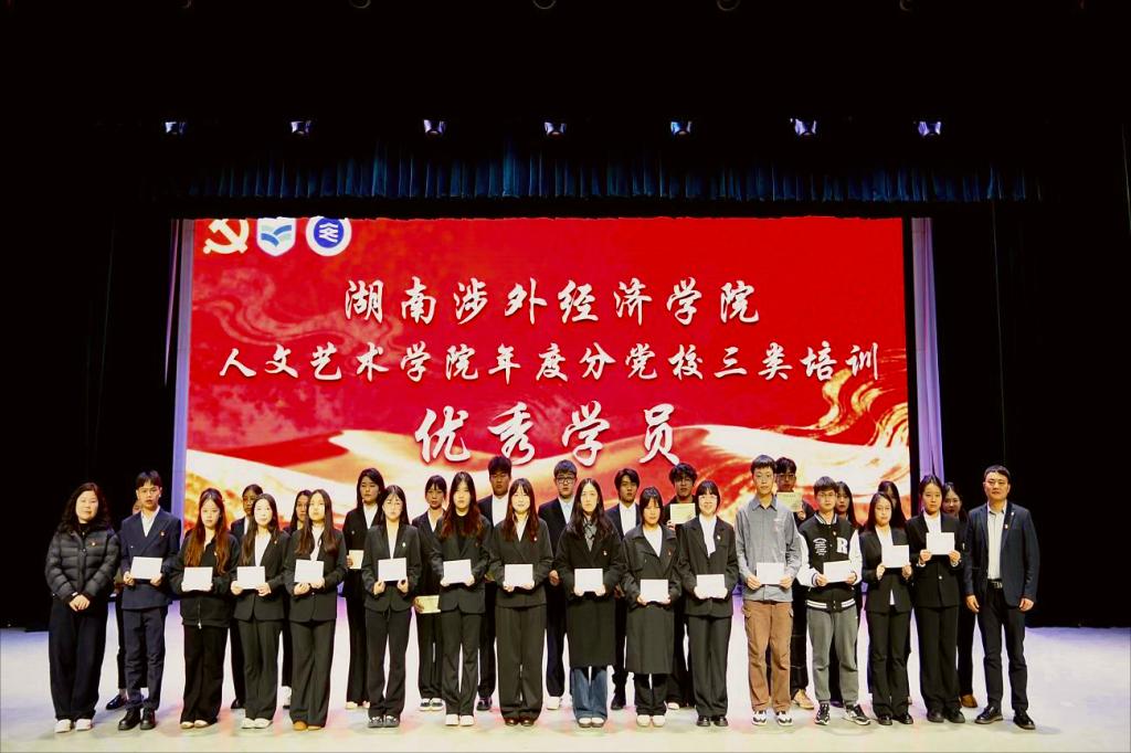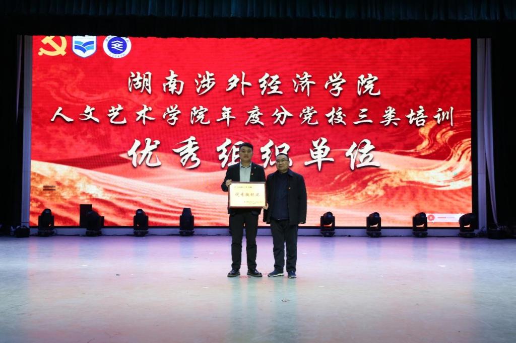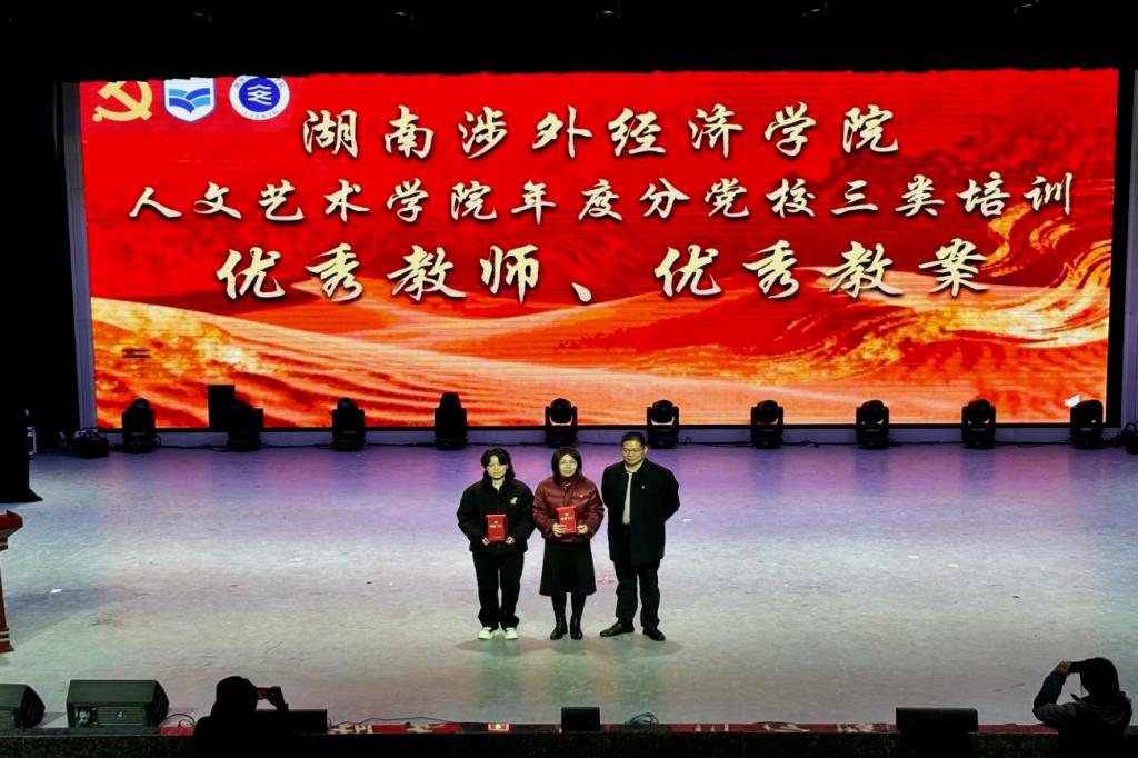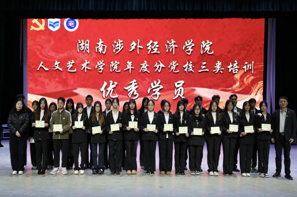 而后,李向明院长为龚先红、党敏两位教师颁发优秀教师奖与优秀教案奖,肯定他们在培训教学中的扎实付出与优异成果;马尚奇书记和许婷婷副书记共同为优秀学员代表颁奖,鼓励青年学子以学促行、勇毅争先;邝继红部长为人文艺术学院颁发湖南涉外经济学院分党校三类培训“优秀组织单位奖”,表彰学院在培训组织中工作中的统筹协调与突出成效。台下掌声阵阵,既是对获奖者的由衷祝贺,也凝聚着全体师生对党建工作高质量发展的殷切期盼。