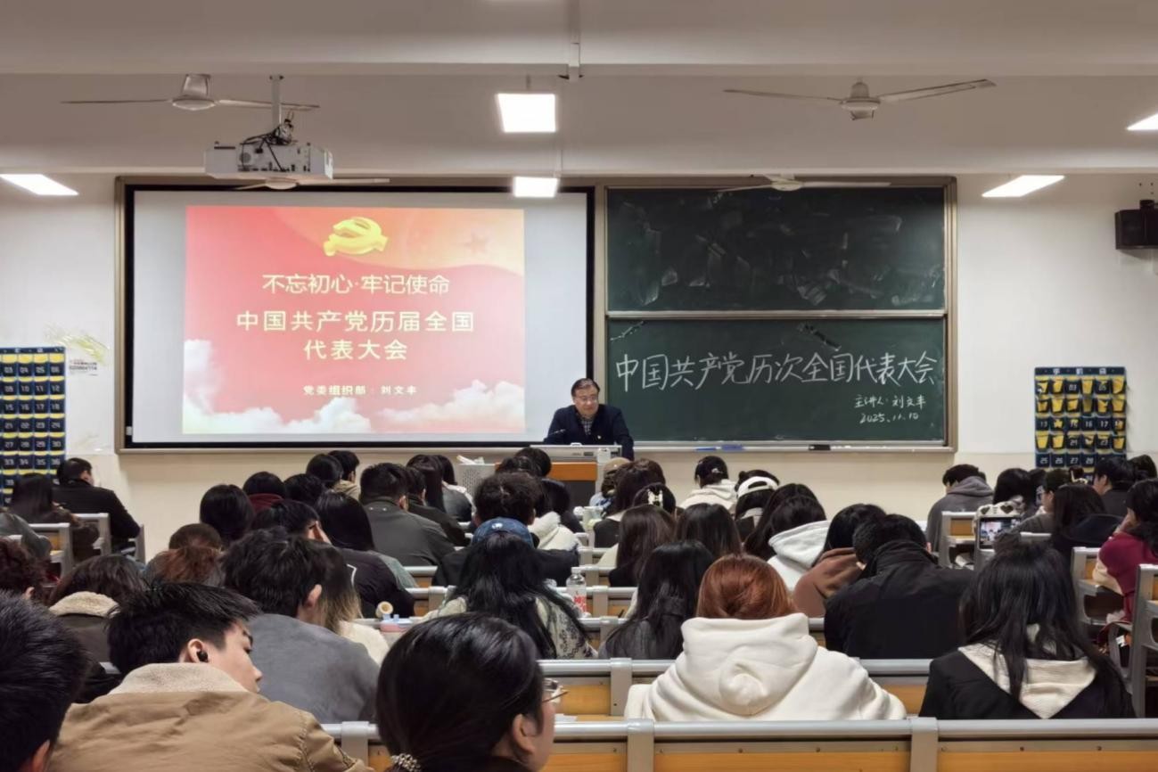 为引导党校学员深学细悟党的百年征程,筑牢信仰之基,凝聚奋进力量。11月10日晚19:00,人文艺术学院在12教209教室开展了主题为“中国共产党历次全国代表大会”的党课培训。本次培训由校党委组织部刘文丰老师主讲,全体发展对象参会学习。
