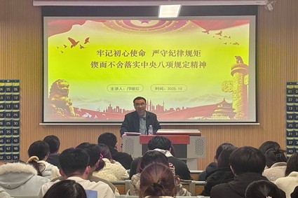 为筑牢预备党员思想根基,推动中央八项规定精神落地生根,引导学员深刻领会党的二十届四中全会精神核心要义,2025年11月12日19时,人文艺术学院在十二教309教室组织开展了第20期预备党员第一次党课培训,主题为“中央八项规定精神学习教育党的二十届四中全会精神解读”。本次党课由校党委组织部部长邝继红老师主讲,第20期全体预备党员参加。