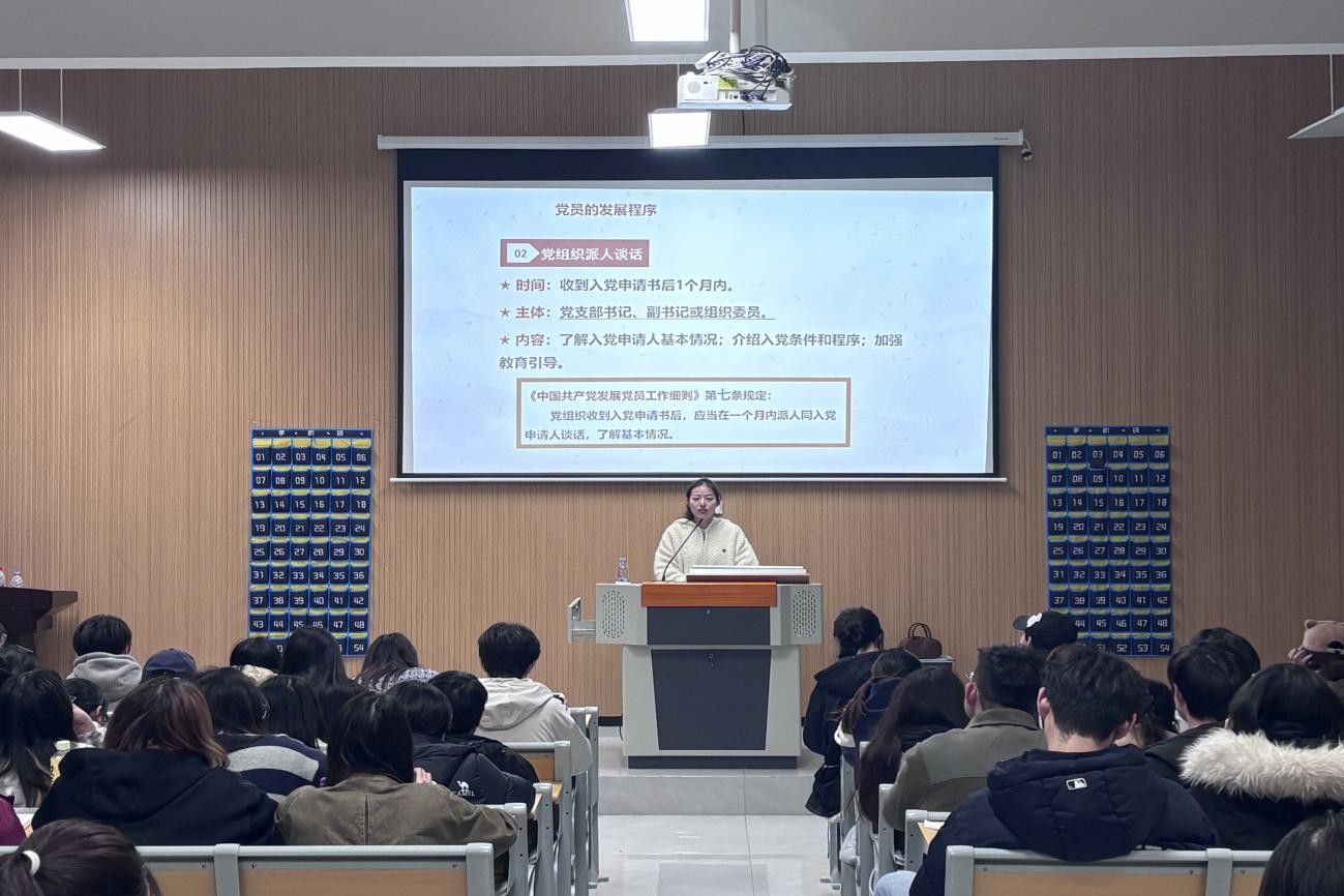 党课伊始,王真老师围绕“入党积极分子培养全流程”主题展开授课,结合党员发展工作细则,系统讲解了入党申请书提交,积极分子推荐,上级党组织备案,培养联系人指定,培养教育考察及相关材料的写作规范等核心环节。课堂上,她通过典型案例分析、流程拆解演示等方式,将理论与实践结合,清晰梳理各环节注意事项与核心要点,还针对学员提出的流程疑问、政治审查材料准备等问题细致解答,进一步夯实了入党积极分子对关键流程的理解与掌握,助力学员深化对入党流程的理解与掌握。