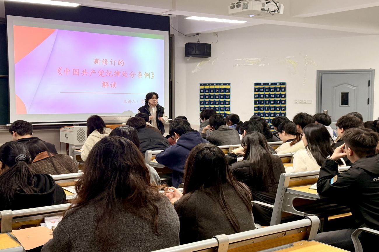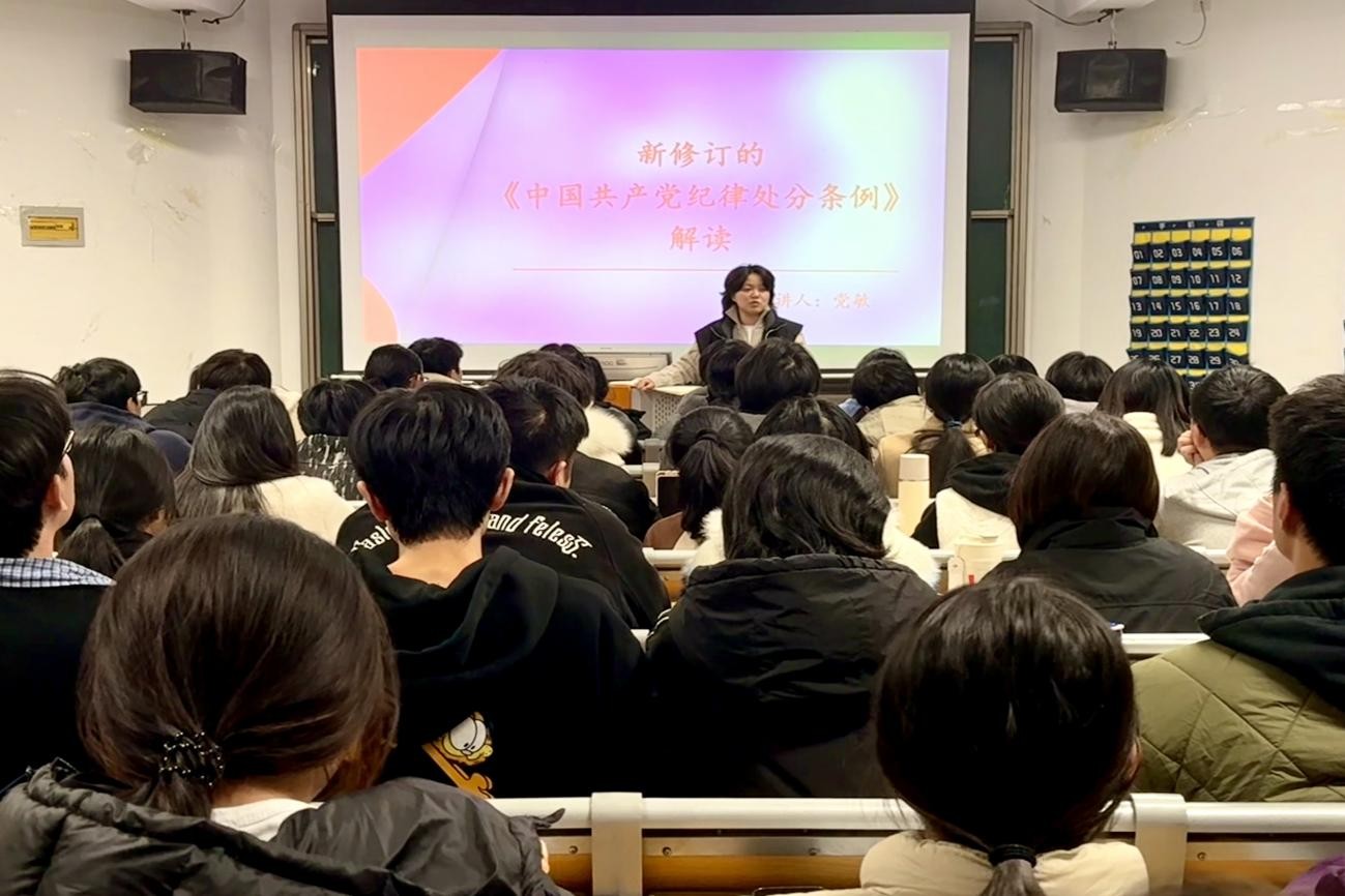 会议伊始,党敏老师表明,《中国共产党纪律处分条例》是规范党员行为的根本遵循、全面从严治党重要制度的根本保障,也是促进全党深刻领悟“两个确立”的决定性意义、坚决做到“两个维护”的必然要求。随后,党敏老师围绕《条例》修订的背景、基本原则和核心内容展开系统讲解,内容全面详实、深入浅出,她结合全面从严治党的新形势新要求,深入阐释了条例对于维护党的团结统一、保持党的先进性和纯洁性的重要作用,引导学员们更准确、更深入地领会学习《条例》的重要意义。