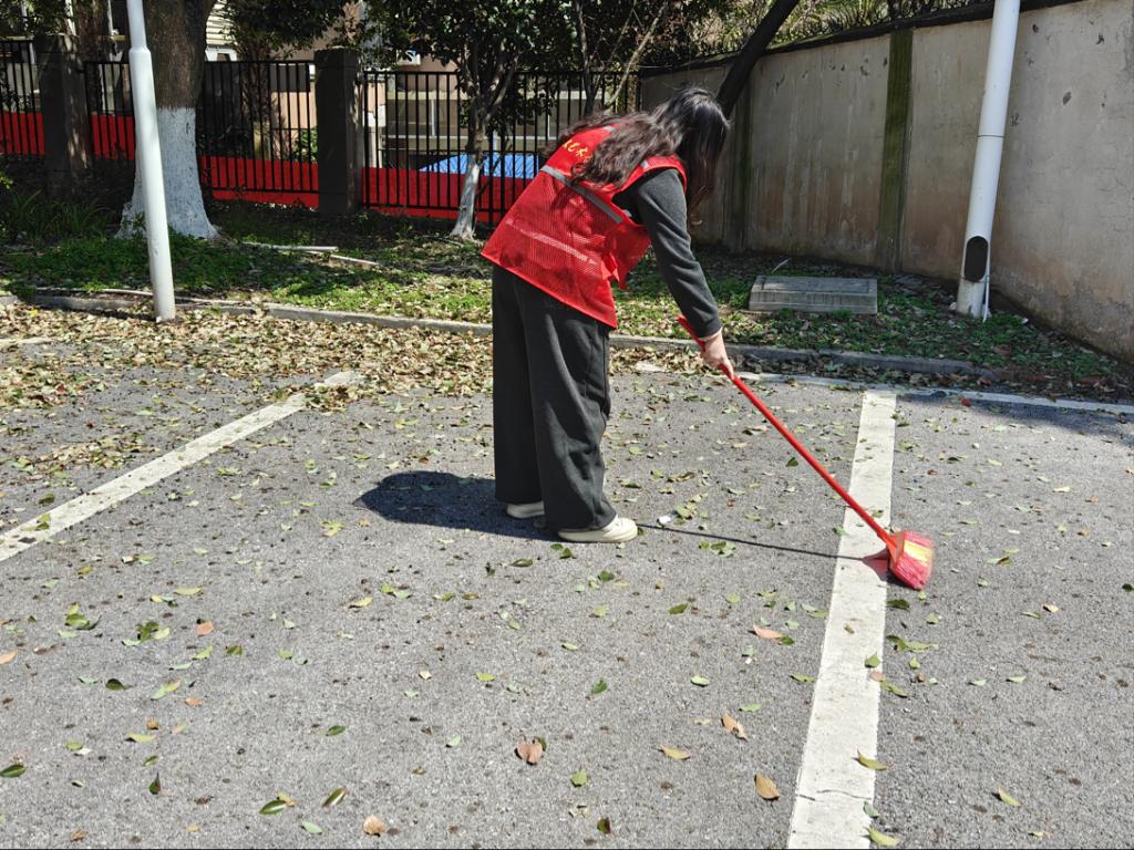 活动现场,党员们依照事前分组迅速行动、分工协作,聚焦校园主干道、教学楼周边、绿化带及休闲长椅旁等重点区域,开展全方位、无死角的环境清洁整治。大家手持清扫工具,细致捡拾路面烟头、塑料纸屑、饮料瓶等各类垃圾,逐一排查并彻底清理校园卫生死角。劳动过程中,党员们不怕脏、不怕累,充分展现出吃苦耐劳、甘于奉献的优良作风,用实干为校园环境添彩,成为春日校园中一抹亮眼的红色风景线。