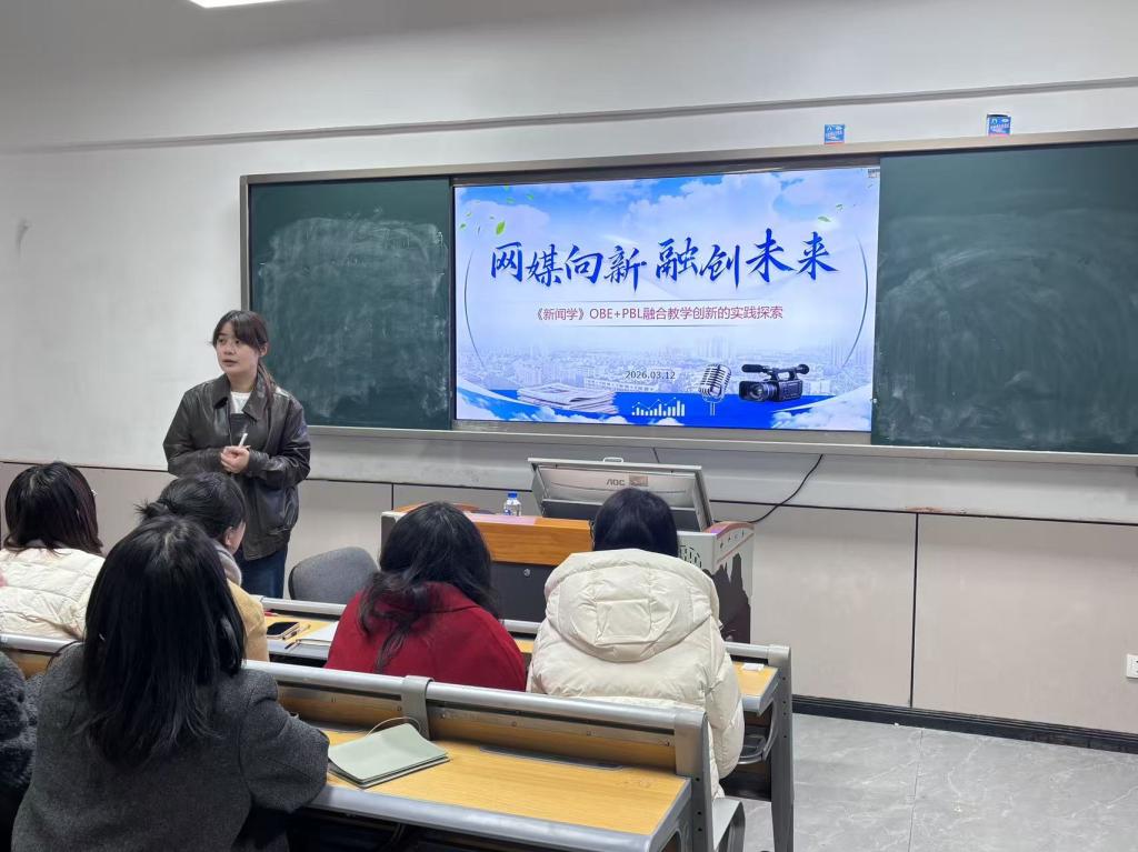 2026年3月20日,网络与新媒体专业系部研讨会在十一教123教室召开.本次会议以“网媒向新 融创未来”为主题,围绕学期工作部署与专业发展规划展开深入研讨。本次研讨会由网络与新媒体系柳青老师担任主讲人,系部全体教师到场聆听。