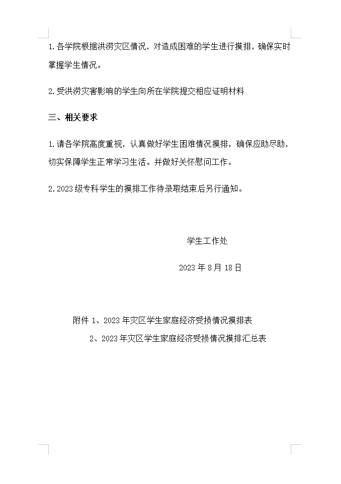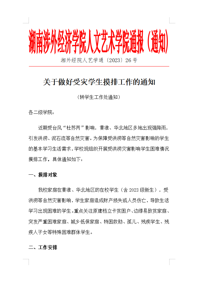关于做好受灾学生摸排工作的通知