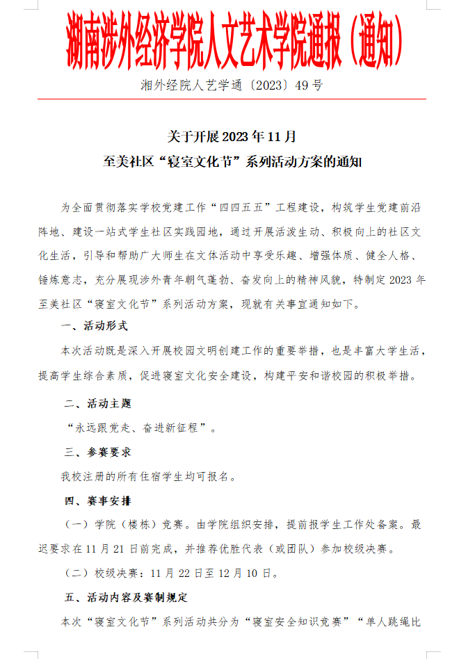 下一条:关于公开选拔湖南涉外经济学院人文艺术学院 “最美寝室”评比大赛的通知