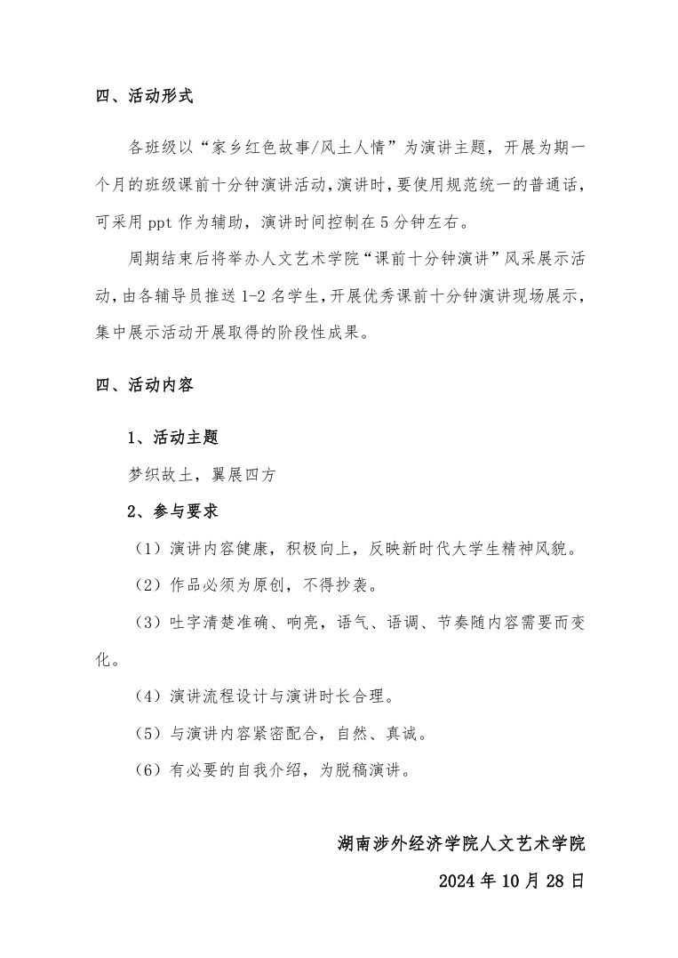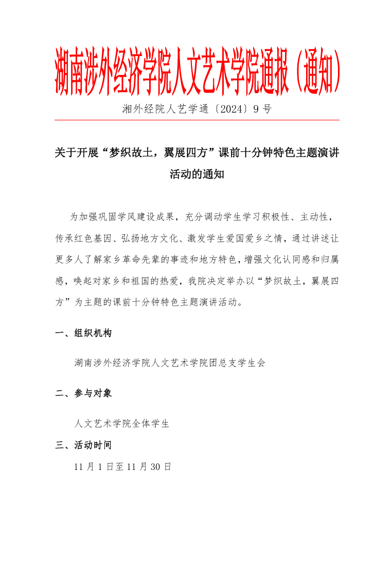 关于开展“梦织故土,翼展四方”课前十分钟特色主题演讲 活动的通知