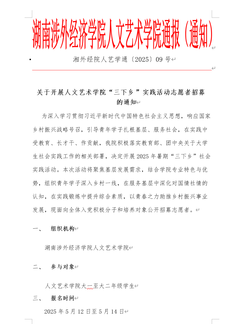下一条:关于开展湖南涉外经济学院人文艺术学院 2025 年“劳动教育周”系列活动的通知