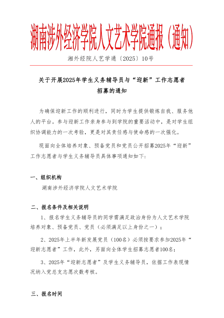 下一条:关于开展人文艺术学院“三下乡 ”实践活动志愿者招募的通知