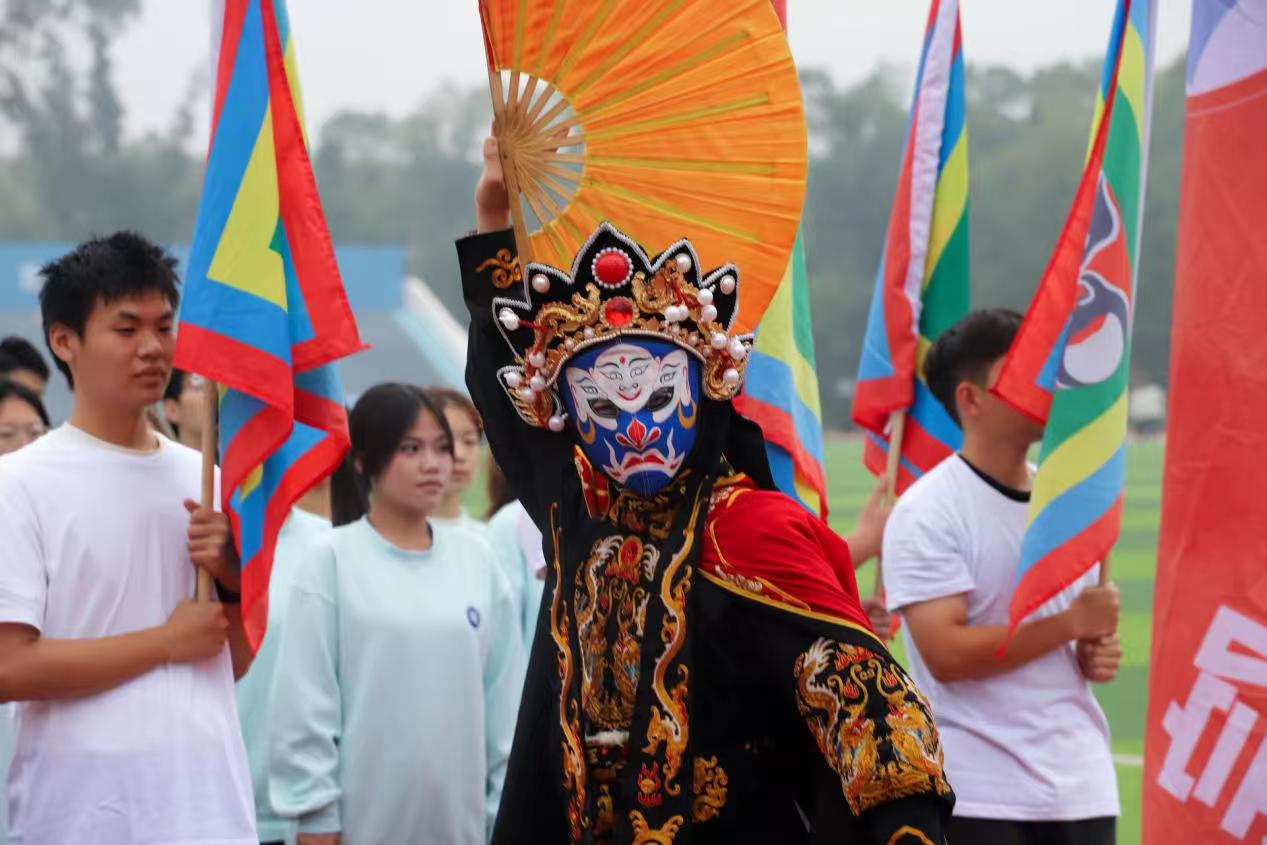 开幕式上,人文艺术学院方阵以“弦歌不辍承文脉,鼓角声声启新程”的惊艳表现成为焦点,更凭借这场融合扇子舞、变脸、喷火特技的国风盛宴斩获“入场式最佳创意奖”。方阵以灵动扇子舞开篇,演员手持彩扇舒展开合,衣袂随舞步轻扬,古韵悠悠;其间穿插变脸造型,脸谱华彩夺目,更搭配震撼喷火特技,焰光跃动间将传统艺术与青春活力完美融合,为全场带来一场视觉与文化的双重盛宴。人文艺术学院用这场表演诠释了“以青春之名,赴传统之约”的育人底色。