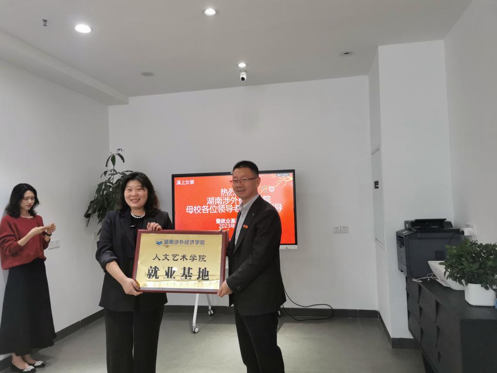 为加强校企合作、深化访企拓岗促就业工作内涵,进一步促进学生充分就业、高质量就业,11月23日,湖南涉外经济学院人文艺术学院廖立彬书记、许婷婷副书记、就业干事胡文辉以及毕业生辅导员们一行于溪上服装进行现场考察,开展“访企拓岗促就业,“职”引未来谱新篇”专题访企拓岗活动。双方签署共建就业实习基地协议,并举行了揭牌仪式。
