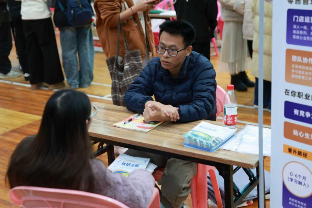 双选会现场气氛热烈,毕业生们携精心准备的简历与企业招聘人员深入交流,充分展现专业素养;企业方通过宣讲、答疑,详细介绍岗位需求与发展前景。